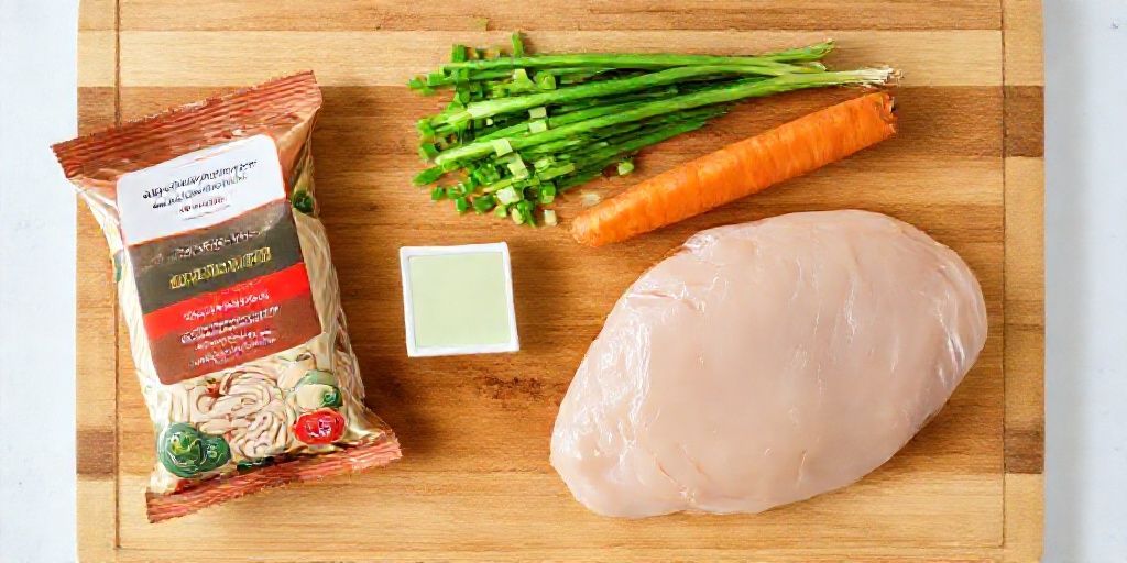 - Лапша быстрого приготовления: 1 брикет (подойдет любая — яичная, рисовая, гречневая). Специи из пакетика можно использовать по желанию.