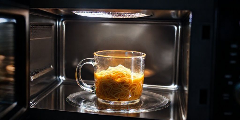 Шаг 3: Магия микроволновки (3-4 минуты) Поставьте кружку в микроволновую печь. Готовьте на максимальной мощности в течение 3-4 минут. Время может варьироваться в зависимости от мощности вашей микроволновки. Вы увидите, как лапша и овощи готовятся прямо на ваших глазах.