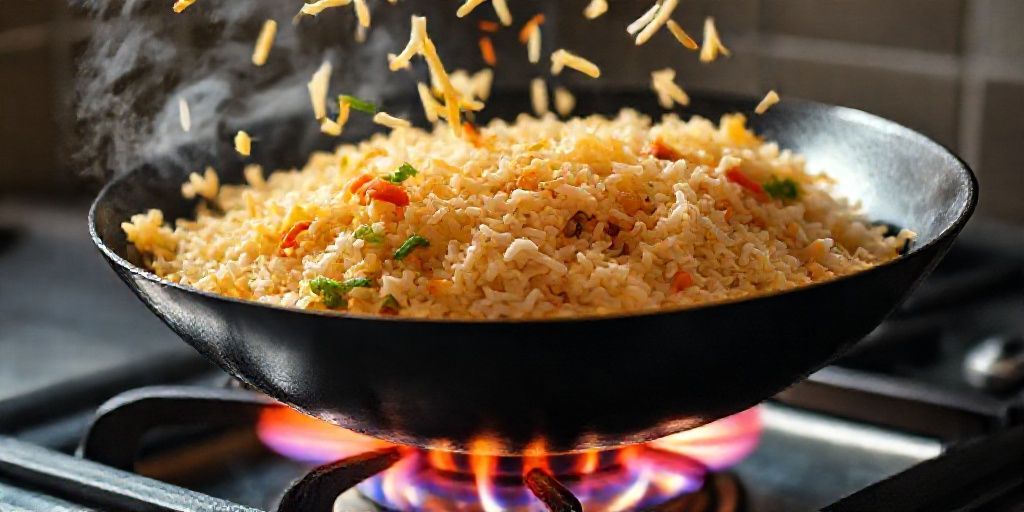 - Спасение остатков: Главный секрет идеального жареного риса — использование вчерашнего, хорошо охлажденного риса. Это блюдо было буквально создано для того, чтобы дать вторую жизнь остаткам еды и сократить пищевые отходы.