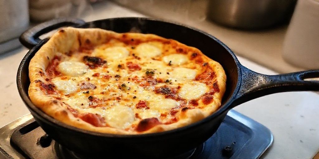 Просто выложите подготовленную пиццу на сухую, хорошо разогретую сковороду. Убавьте огонь до минимума, накройте крышкой и готовьте 5-7 минут. Крышка необходима, чтобы тепло циркулировало и сыр хорошо расплавился. Основа получится чуть более мягкой, чем в духовке, но не менее вкусной.
