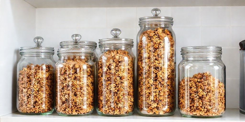 Храните готовую гранолу в плотно закрытой стеклянной банке при комнатной температуре. Так она сохранит свою хрусткость до 3-4 недель. Это делает её идеальным продуктом для приготовления заранее.