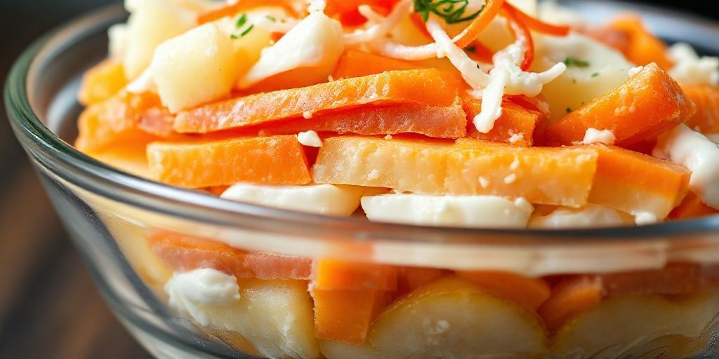 - Не жалейте времени. Дайте салату настояться в холодильнике минимум 2-3 часа, а лучше — всю ночь. За это время все слои пропитаются, и вкус станет более гармоничным и насыщенным.