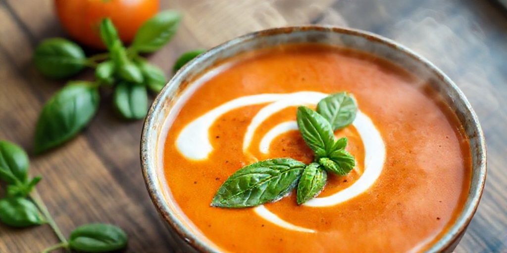 - Лёгкий и полезный: Суп готовится без молочных продуктов и тяжелых жиров. Его основа — спелые томаты, богатые ликопином и антиоксидантами, и свежий базилик, известный своими противовоспалительными свойствами.