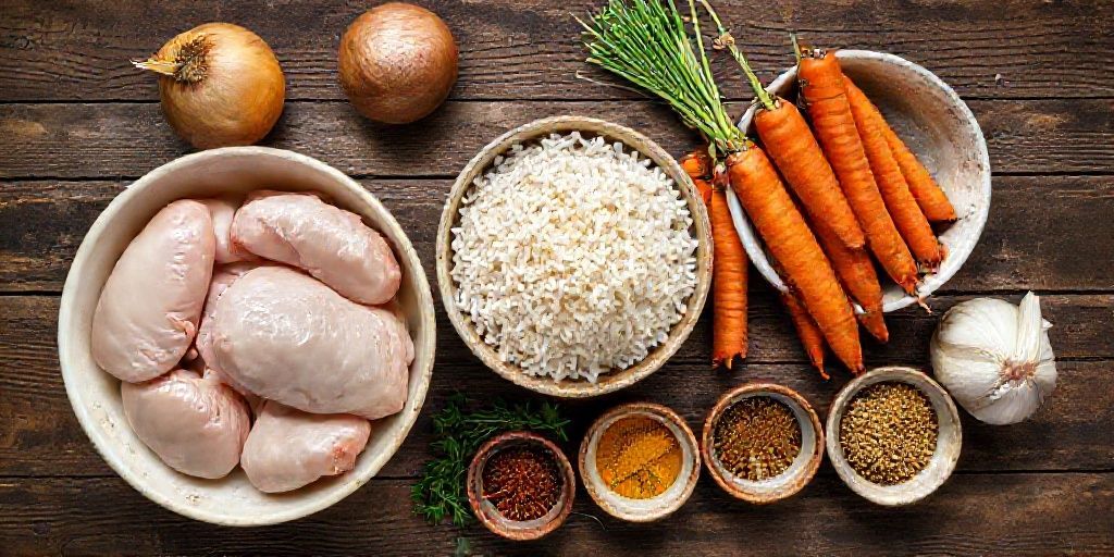 Шаг 1: Подготовка ингредиентов Промойте рис в нескольких водах, пока вода не станет полностью прозрачной. Залейте его теплой подсоленной водой и оставьте на 20-30 минут. Курицу промойте, обсушите бумажными полотенцами и нарежьте на порционные куски. Если используете филе, режьте крупными кубиками. Лук нарежьте тонкими полукольцами, а морковь — длинной соломкой толщиной около 0.5 см. Не трите морковь на терке — это превратит плов в кашу.