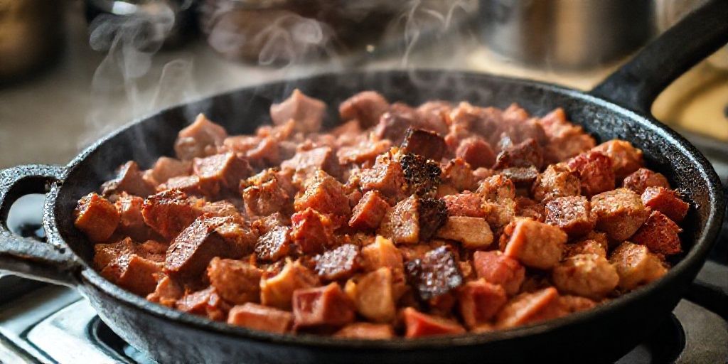 - Обжарка Мясных Продуктов. На отдельной сухой сковороде слегка обжарьте нарезанные копчености. Это усилит их аромат и сделает вкус более выразительным.